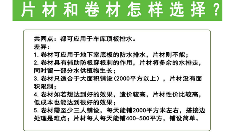 1、導(dǎo)水排水性。2、防水性能。3、排水板保護(hù)防護(hù)性。4、隔音及通風(fēng)防潮功能。